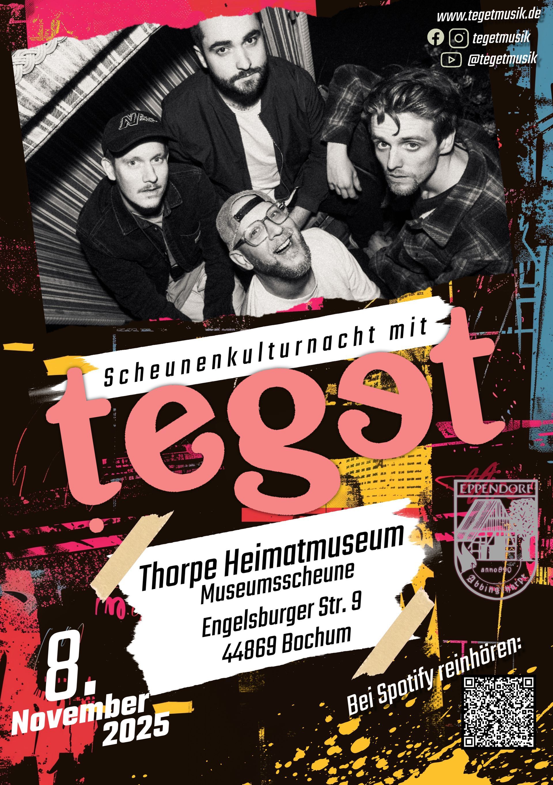 Die Band "teget" spielt im Rahmen der "Nichts als Glück im Sinn"-Tour 2025 am 8. November 2025 in der Musseumsscheune des Eppendorfer Heimatvereins.